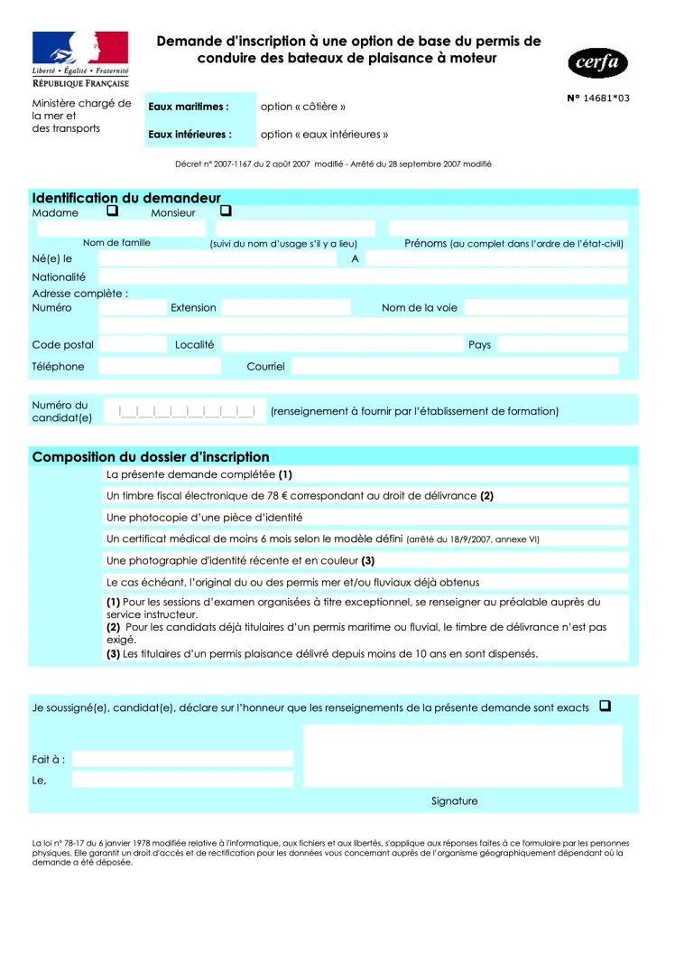 - Pour les candidats ayant déjà passé le permis bateau récemment en notre bateau-école Mer Multi Loisirs, ne fournir que la copie du permis et le timbre fiscal – timbre à 38€ pour le hauturier uniquement)